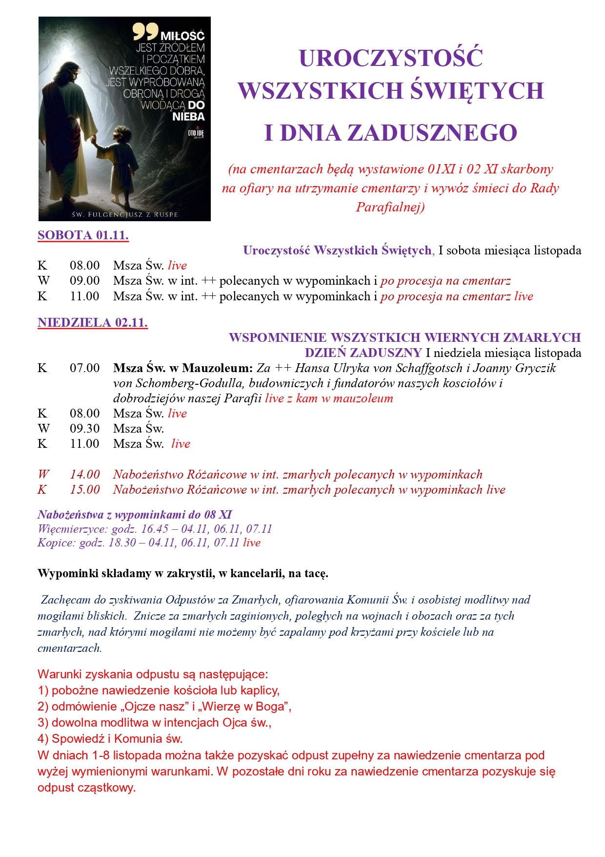 Uroczystość Wszystkich Świętych i Dnia Zadusznego