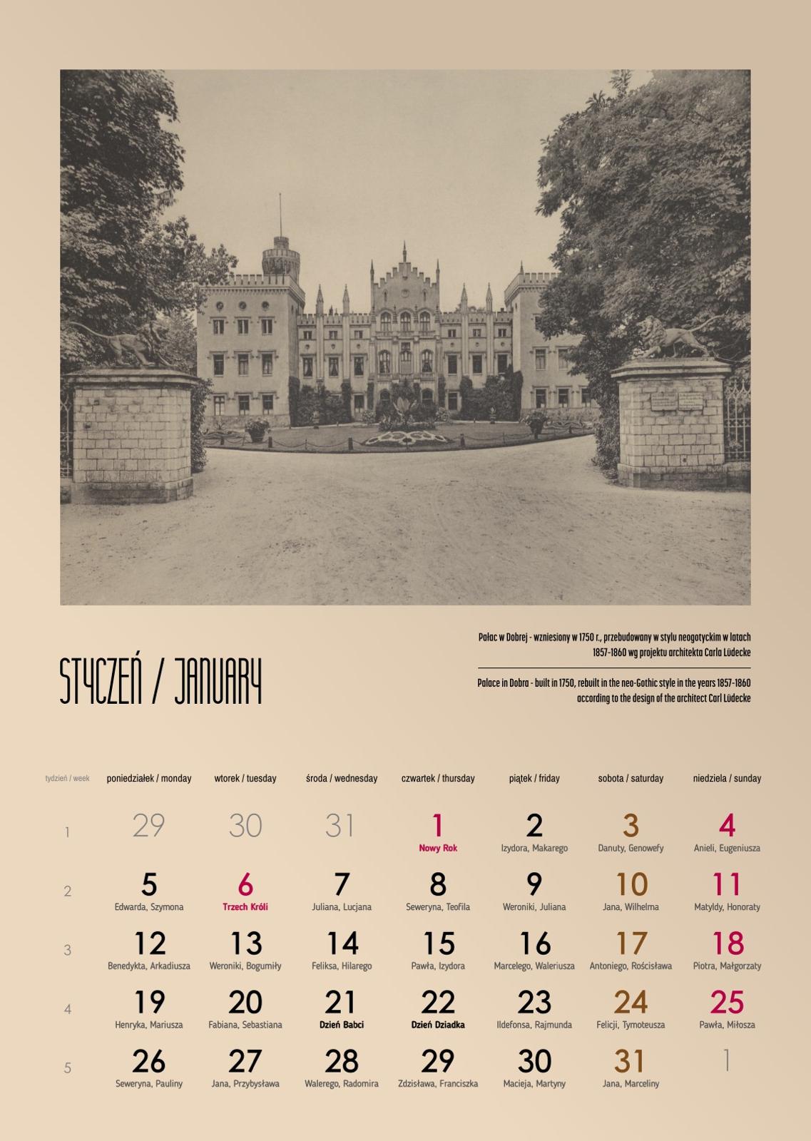 Mamy nadzieję, że tegoroczna edycja kalendarza zaskoczy zarówno miłośników, jak i wszystkich wspierających nasze dotychczasowe działania. Niektórych obiektów nie ma już dziś w krajobrazie – pozostały po nich jedynie dawne fotografie z epoki, gdy zamieszkiwały je śląskie rody arystokratyczne.